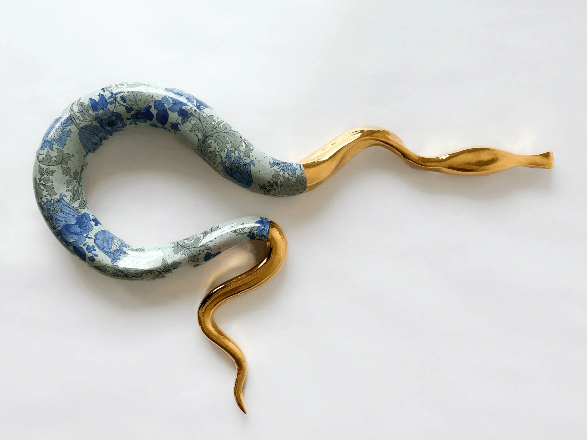 Made in partnership with Ken Fulk, these sculptural works are glazed in a multi-layered process using a collage of vintage transfers and real gold luster details.