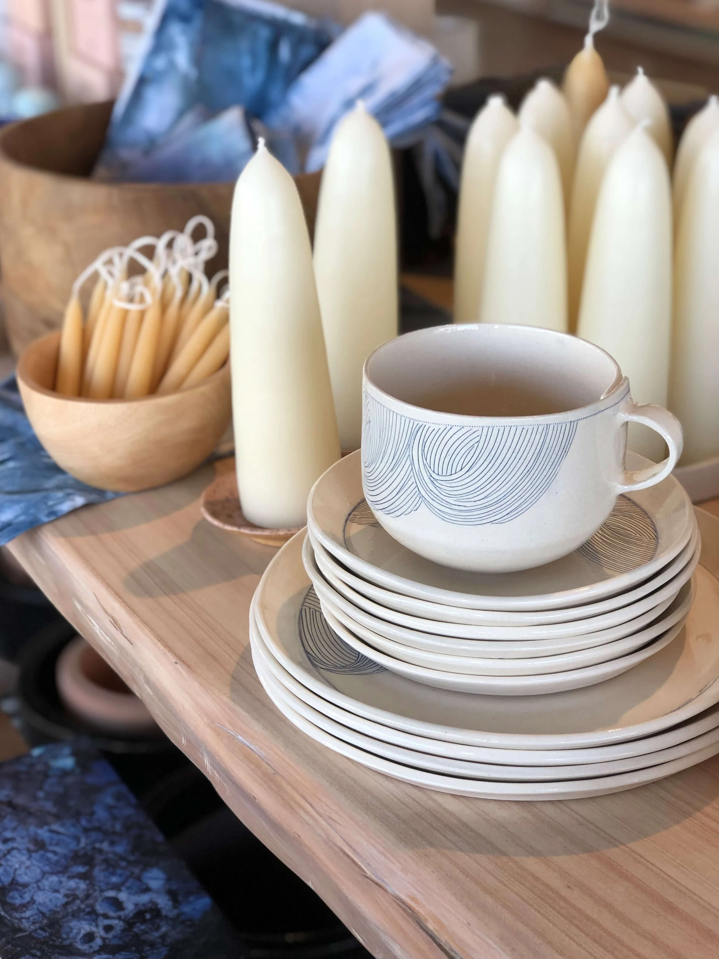 The new shop offered the same carefully curated selection of goods from around the globe and an open plan working ceramic studio.